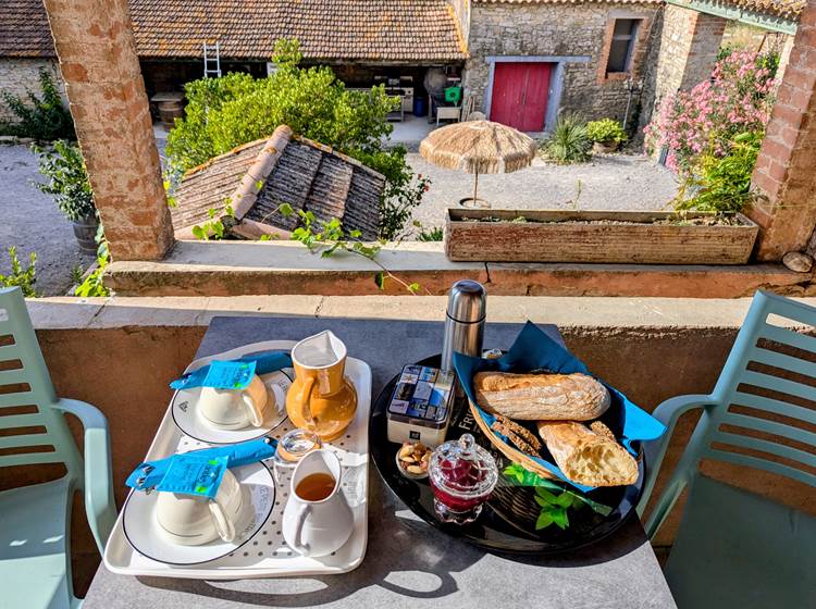 Des fenêtres de la maison d'hôtes, vous contemplerez la vue imprenable sur les vignes et les montagnes cévenoles ainsi que la cour intérieure du Mas. En contrepoint de ce décor naturel, les intérieurs jouent sur des lignes résolument authentiques où se mêlent les espaces de vie : géométrie épurée de l'architecture, sobriété et qualité des matériaux choisis.